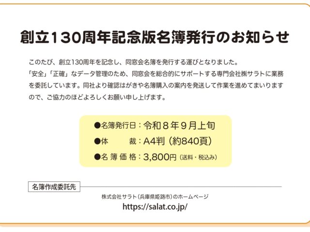 定期総会へのご参加、同窓会活動へのご理解ご協力を引き続きよろしくお願いいたします。
